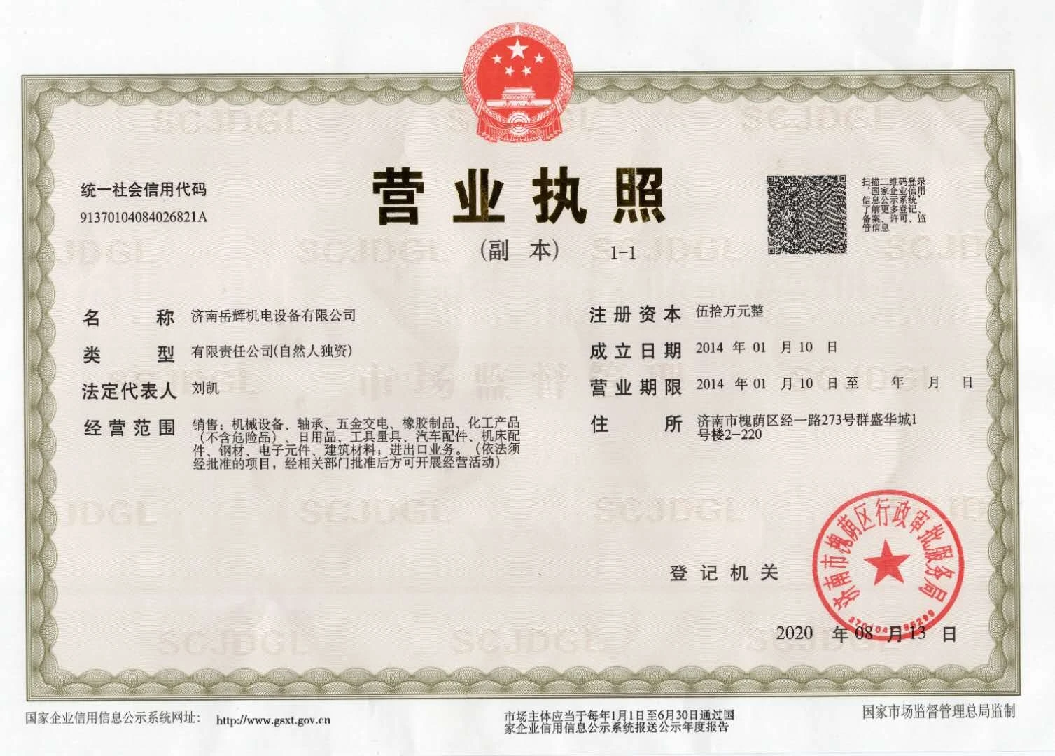 Registration No. : 91370104084026821A